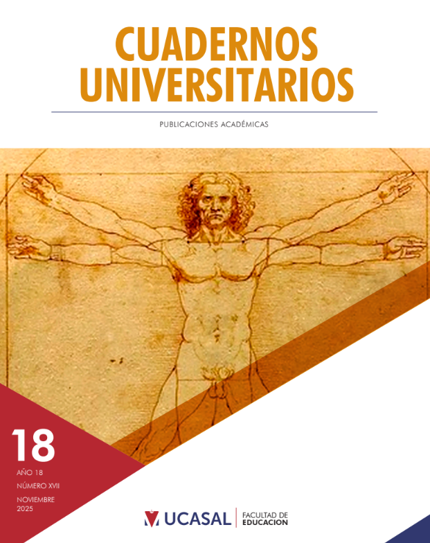 Cuadernos Universitarios es una publicación científica de la Facultad de Educación de la Universidad Católica de Salta, Argentina, creada en el año 2008 (ISSN: 2250-7124 / e-ISSN: 2250-7132) y publicada bajo el sello EUCASA (Ediciones Universidad Católica de Salta).Es una revista de acceso abierto. Es decir que todo su contenido está libremente disponible sin cargo para usos lícitos por los usuarios, sin autorización previa del autor o del editor. Los autores retienen, sin embargo, el derecho a ser adecuadamente citados.Es una revista de periodicidad anual, creada originalmente con un contenido plural y, a partir del próximo número (12, 2019), se centrará en temas de educación superior, en nuestro contexto regional y nacional, en diálogo con los contextos internacionales. Su enfoque es multidisciplinar, pues se pretende el abordaje de la temática desde diferentes campos disciplinares y áreas de interés.Contiene artículos, ensayos, notas y reseñas de libros. Los trabajos son inéditos y de carácter original, y son sometidos a un proceso de evaluación externa a la entidad editora para su aceptación.La responsabilidad sobre las opiniones vertidas en los textos y sobre el respeto a la propiedad intelectual corresponde a los autores.Los Cuadernos Universitarios han sido incorporados al Catálogo Latindex (Sistema Regional de Información para las Revistas Científicas de América Latina, el Caribe, España y Portugal), Folio 23762, y a la base de datos CLASE (Citas Latinoamericanas en Ciencias Sociales y Humanidades).